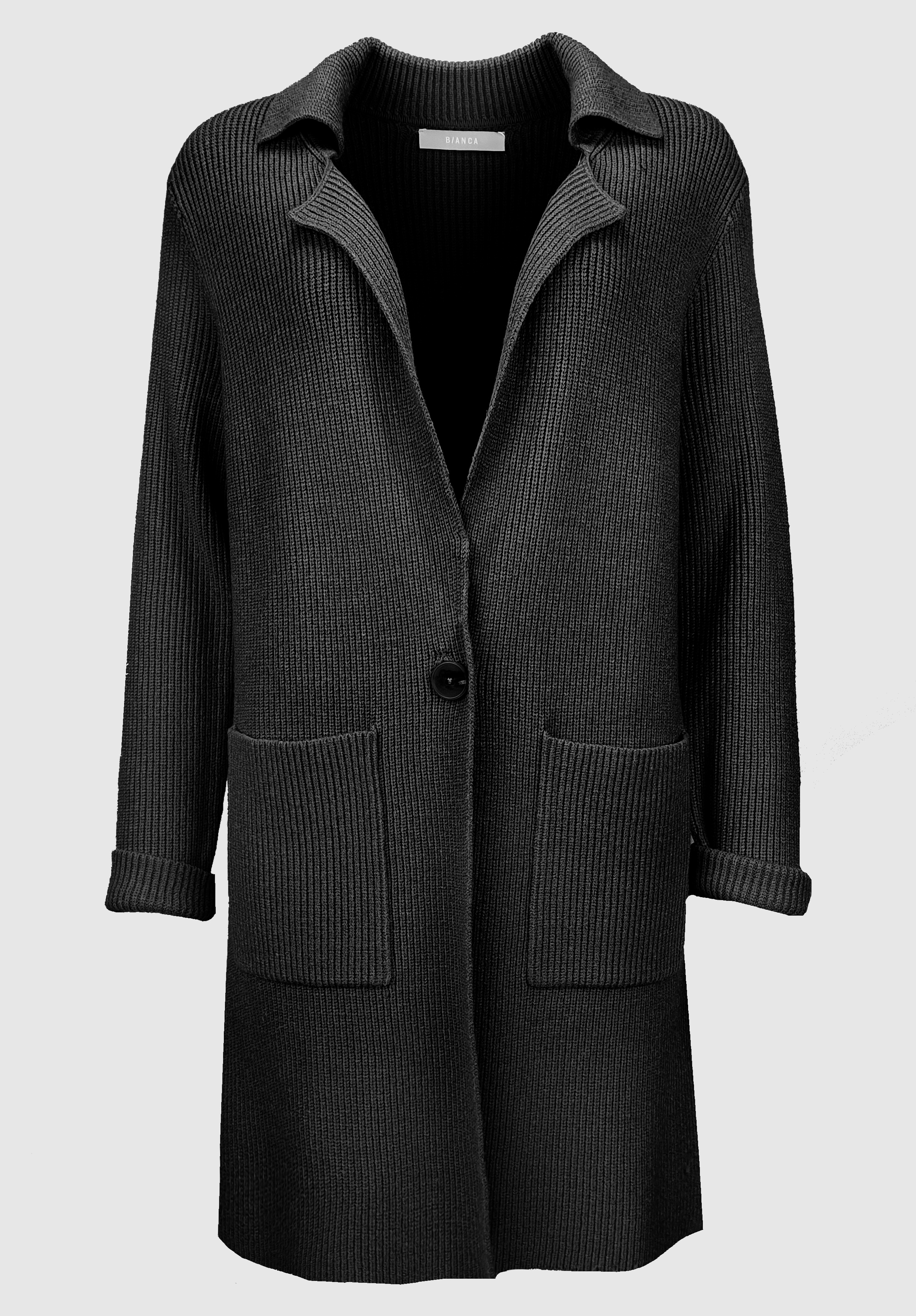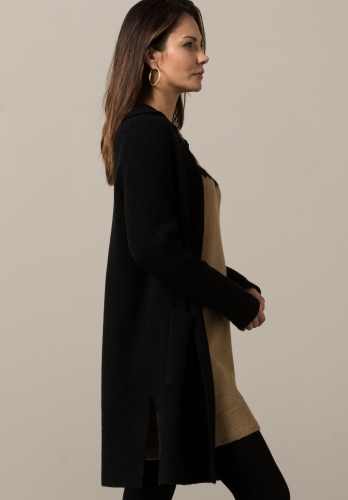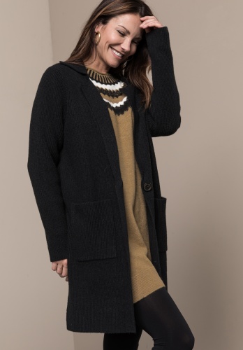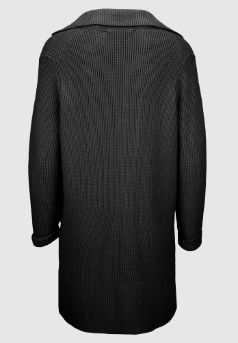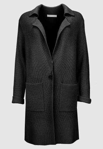 На сайте указаны российские размеры. Повседневный кардиган модной тонкой вязки. Благодаря сочетанию высококачественных материалов он не только сохраняет тепло, но и обеспечивает приятное ощущение уюта. Модный вид тонкой вязки, легкий воротник с лацканами и застежка на 1 пуговицу. Длинные рукава и свободный прямой крой завершают стильный образ. Длина модели в 44 размере около 85 см.
